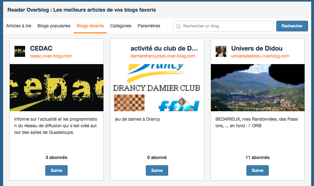 Le Reader vous propose également un moteur de recherches pour trouver facilement n'importe quel blog et vous abonner à ce dernier.